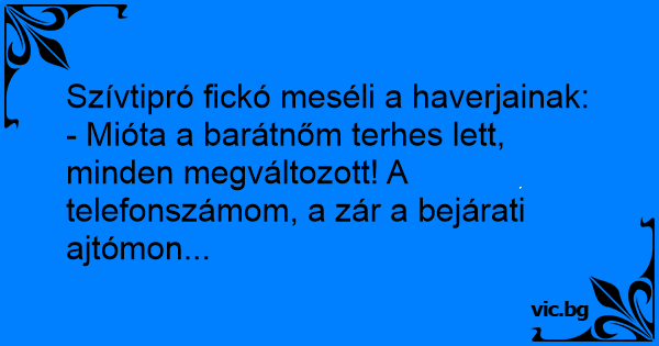 - Mióta a barátnőm terhes lett, minden megváltozott! A telefonszámom, a zár a bejárati ajtómon...