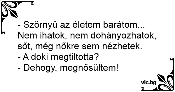 - Szörnyű az életem barátom... Nem ihatok, nem dohányozhatok, sőt, még nőkre sem nézhetek.