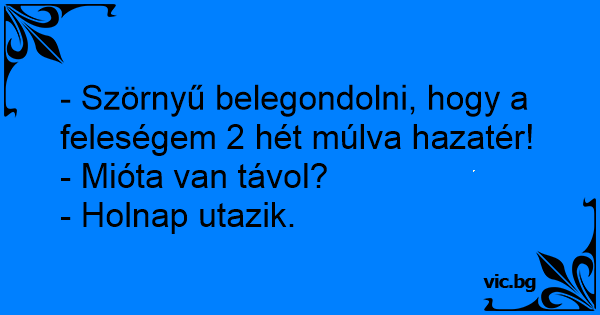 - Szörnyű belegondolni, hogy a feleségem 2 hét múlva hazatér!