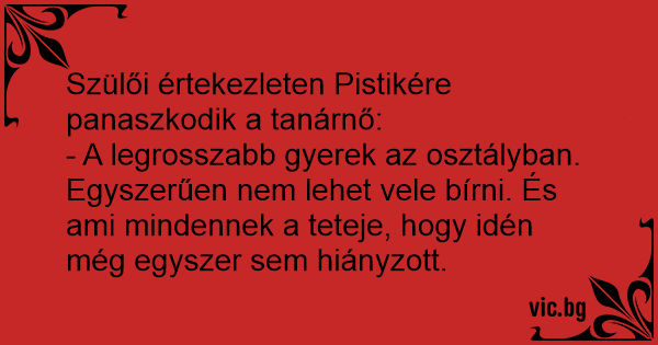- A legrosszabb gyerek az osztályban. Egyszerűen nem lehet vele bírni. És ami mindennek a teteje, hogy idén még egyszer sem hiányzott.