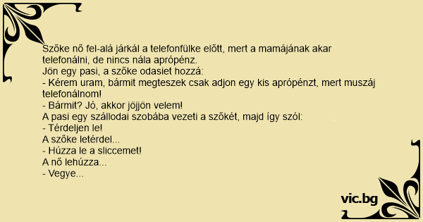 - Kérem uram, bármit megteszek csak adjon egy kis aprópénzt, mert muszáj telefonálnom!