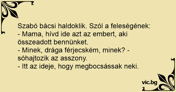 Szabó bácsi haldoklik. Szól a feleségének: