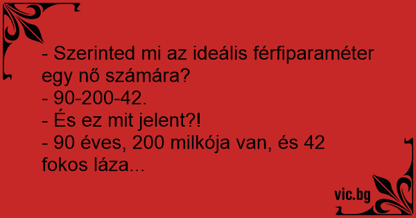 - Szerinted mi az ideális férfiparaméter egy nő számára?