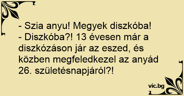 - Diszkóba?! 13 évesen már a diszkózáson jár az eszed, és közben megfeledkezel az anyád 26. születésnapjáról?!