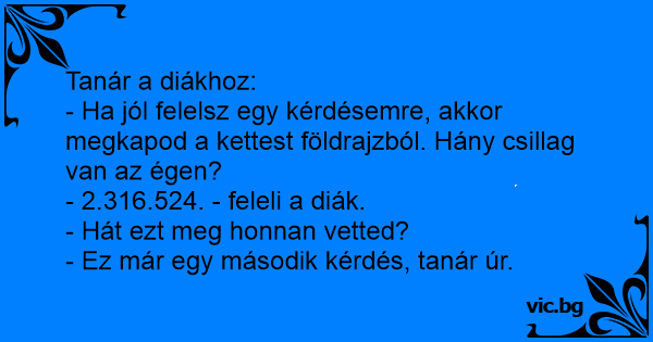 - Ha jól felelsz egy kérdésemre, akkor megkapod a kettest földrajzból. Hány csillag van az égen?