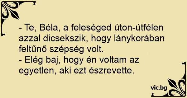 - Te, Béla, a feleséged úton-útfélen azzal dicsekszik, hogy lánykorában feltűnő szépség volt.