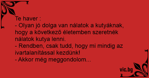 - Olyan jó dolga van nálatok a kutyáknak, hogy a következő életemben szeretnék nálatok kutya lenni.