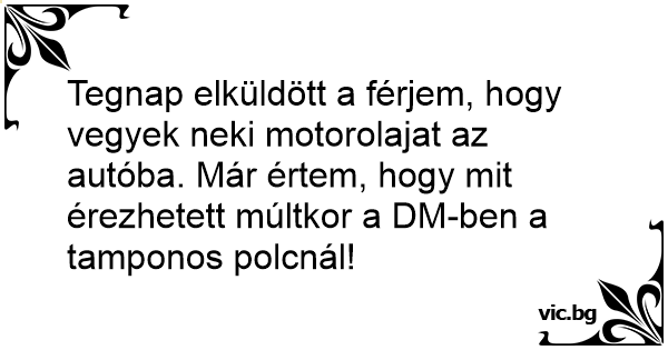 Tegnap elküldött a férjem, hogy vegyek neki motorolajat az autóba. Már értem, hogy mit érezhetett múltkor a DM-ben a tamponos polcnál!