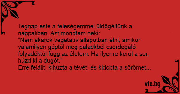 Tegnap este a feleségemmel üldögéltünk a nappaliban. Azt mondtam neki: