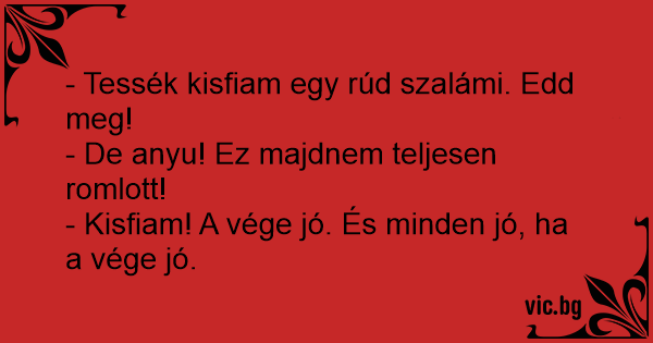 - Kisfiam! A vége jó. És minden jó, ha a vége jó.