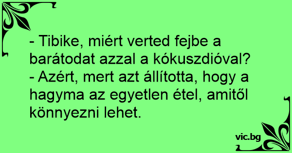 - Tibike, miért verted fejbe a barátodat azzal a kókuszdióval?