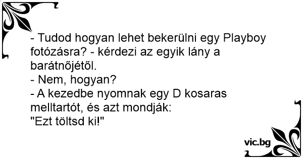 - Tudod hogyan lehet bekerülni egy Рlаyвоy fotózásra? - kérdezi az egyik lány a barátnőjétől.