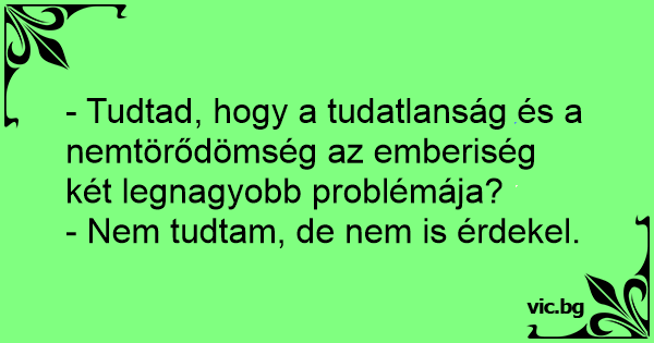 - Tudtad, hogy a tudatlanság és a nemtörődömség az emberiség két legnagyobb problémája? - Nem tudtam, de nem is érdekel.