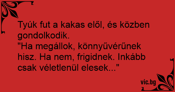 Tyúk fut a kakas elől, és közben gondolkodik.
