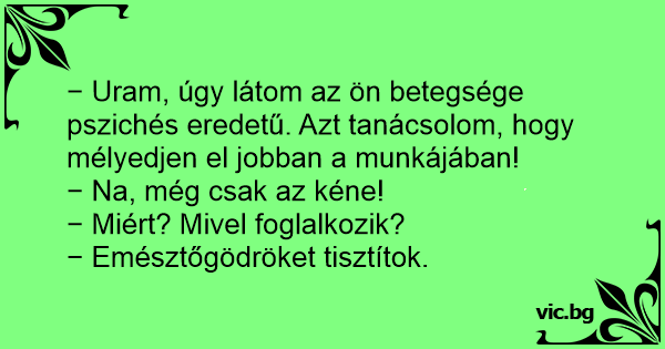 − Uram, úgy látom az ön betegsége pszichés eredetű. Azt tanácsolom, hogy mélyedjen el jobban a munkájában!