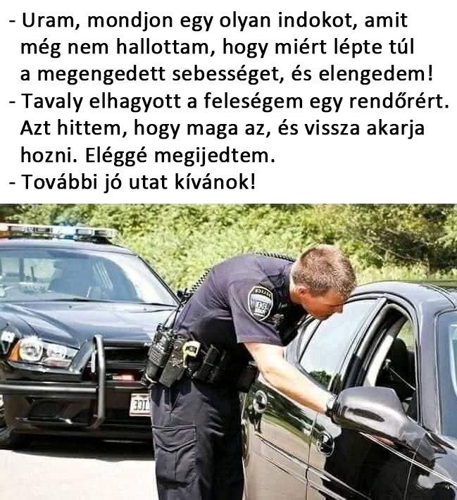 Egy fickó vett egy új sportautót, és vidáman hajtott vele hazafelé az autópályán. Gondolta, kipróbálja, mit tud az új verda. Beletaposott a gázba, és a sebességmérő azonnal felment 200-ra. Nem...