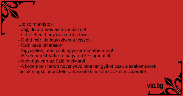 Utolsó mondatok: - Jajj, de...