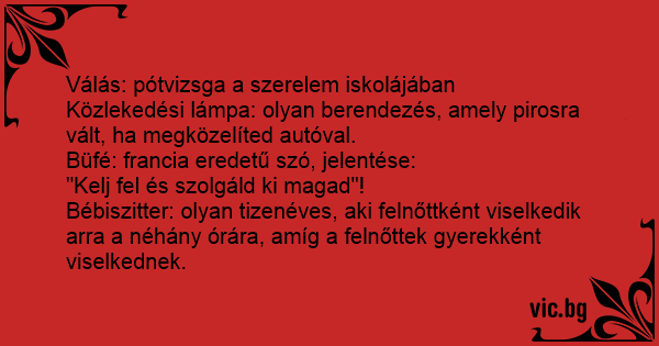 Bébiszitter: olyan tizenéves, aki felnőttként viselkedik arra a néhány órára, amíg a felnőttek gyerekként viselkednek.