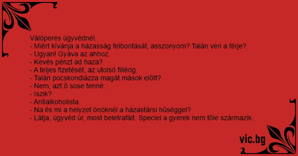 - Miért kívánja a házasság felbontását, asszonyom? Talán veri a férje?