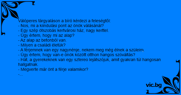Válóperes tárgyaláson a bíró kérdezi a feleségtől: