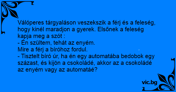 - Tisztelt bíró úr, ha én egy automatába bedobok egy százast, és kijön a csokoládé, akkor az a csokoládé az enyém vagy az automatáé?