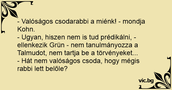 - Valóságos csodarabbi a miénk! - mondja Kohn.