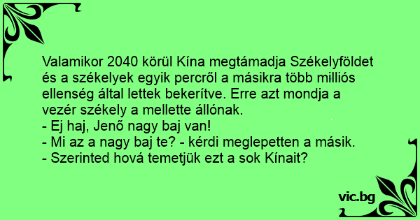 Valamikor 2040 körül Kína megtámadja Székelyföldet és a székelyek egyik percről a másikra több milliós ellenség által lettek bekerítve. Erre azt mondja a vezér székely a mellette állónak.