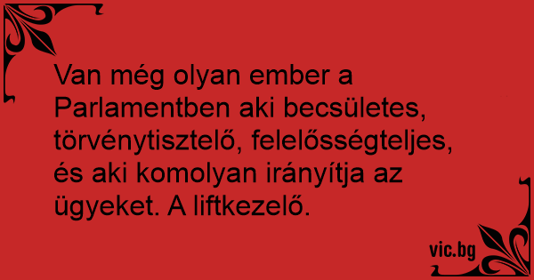 Van még olyan ember a Parlamentben aki becsületes, törvénytisztelő, felelősségteljes, és aki komolyan irányítja az ügyeket. A liftkezelő.
