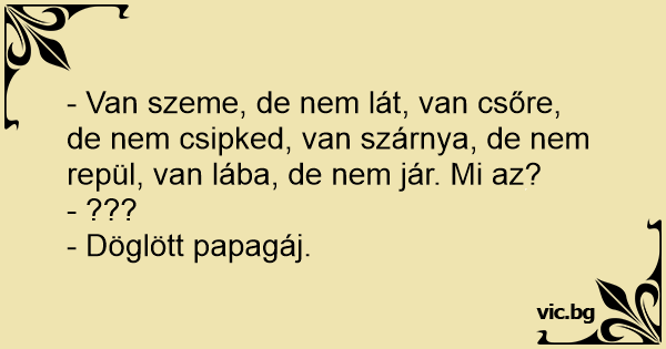 - Van szeme, de nem lát, van csőre, de nem csipked, van szárnya, de nem repül, van lába, de nem jár. Mi az?