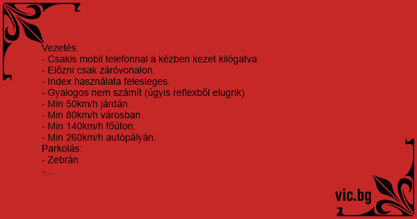 - Gyalogos nem számít (úgyis reflexből elugrik)