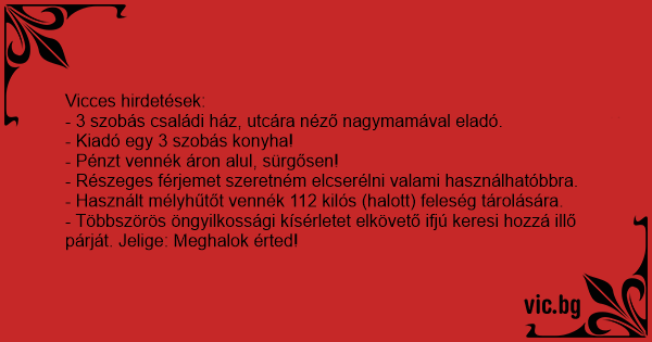 - Többszörös öngyilkossági kísérletet elkövető ifjú keresi hozzá illő párját. Jelige: Meghalok érted!