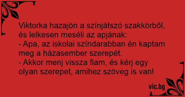 Viktorka hazajön a színjátszó szakkörből, és lelkesen meséli az apjának: