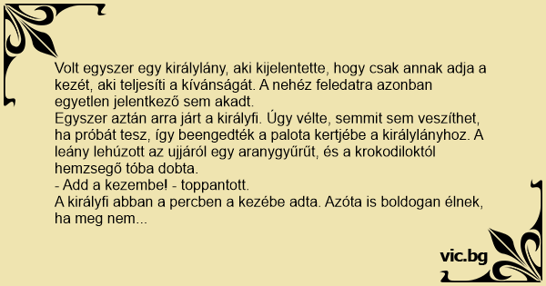 A királyfi abban a percben a kezébe adta. Azóta is boldogan élnek, ha meg nem haltak.