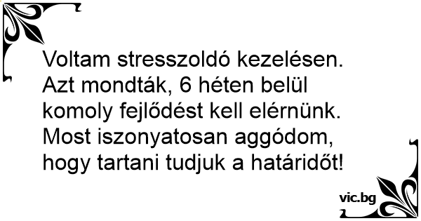 Voltam stresszoldó kezelésen. Azt mondták, 6 héten belül komoly fejlődést kell elérnünk.
