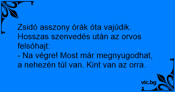 Zsidó asszony órák óta vajúdik. Hosszas szenvedés után az orvos felsóhajt: