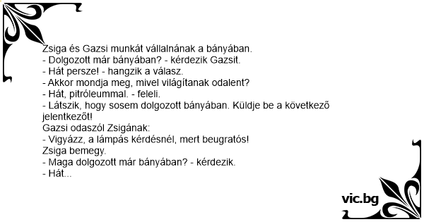 - Látszik, hogy sosem dolgozott bányában. Küldje be a következő jelentkezőt!
