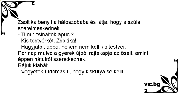 - Hagyjátok abba, nekem nem kell kis testvér.
