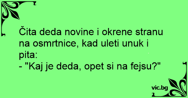 Čita deda novine i okrene stranu na osmrtnice, kad uleti unuk i pita: