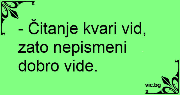 - Čitanje kvari vid, zato nepismeni dobro vide.