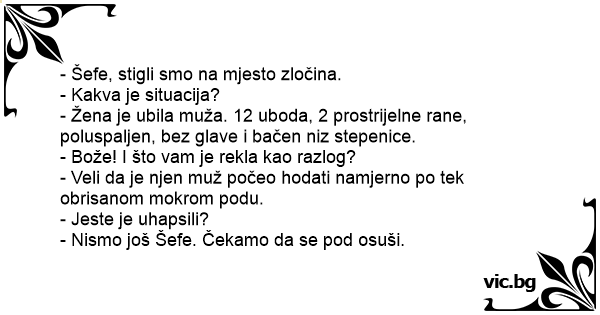 - Žena je ubila muža. 12 uboda, 2 prostrijelne rane, poluspaljen, bez glave i bačen niz stepenice.