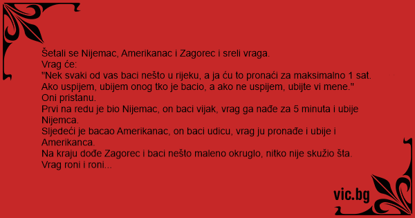 Šetali se Nijemac, Amerikanac i Zagorec i sreli vraga.