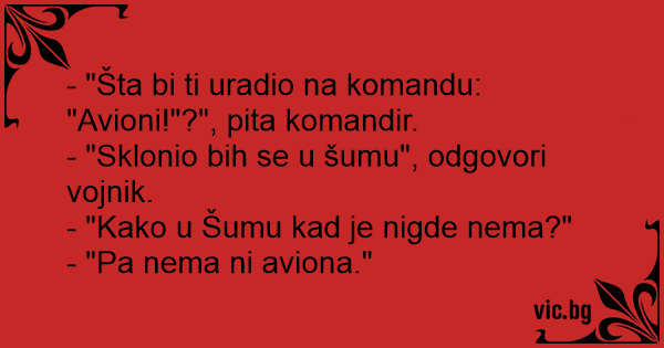 - "Sklonio bih se u šumu", odgovori vojnik.