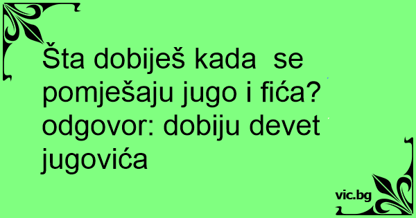Šta dobiješ kada se pomješaju jugo i fića? odgovor: dobiju devet jugovića