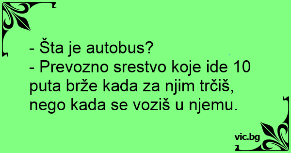 - Prevozno srestvo koje ide 10 рuта brže kada za njim trčiš, nego kada se voziš u njemu.