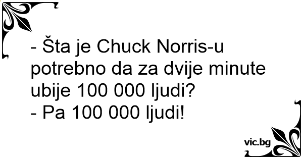 - Šta je Chuck Norris-u potrebno da za dvije minute ubije 100 000 ljudi?