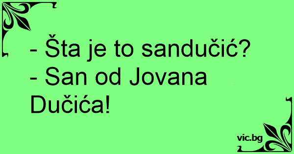 - Šta je to sandučić?<br />- San od Jovana Dučića!