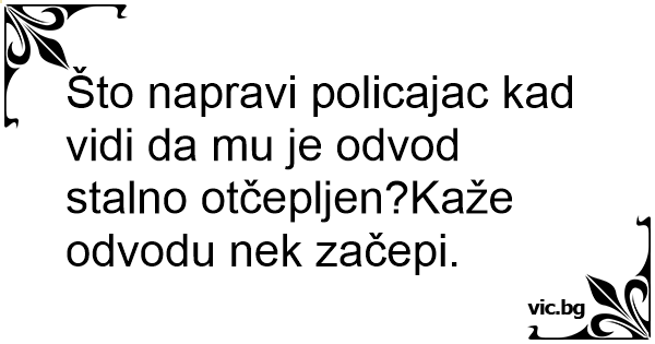 Što napravi policajac kad vidi da mu je odvod stalno otčepljen?Kaže odvodu nek začepi.