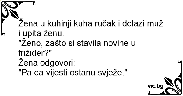 "Ženo, zašto si stavila novine u frižider?"