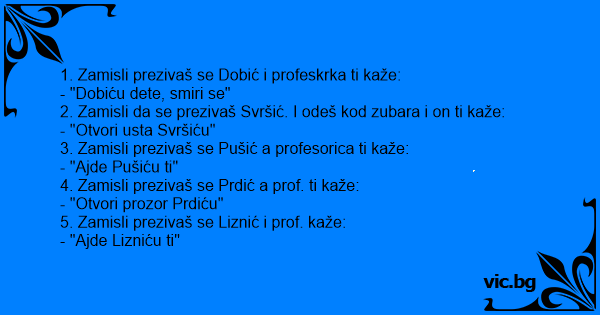 ‎1. Zamisli prezivaš se Dobić i profeskrka ti kaže: