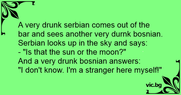 A very drunк serbian comes out of the bar and sees another very durnk bosnian.